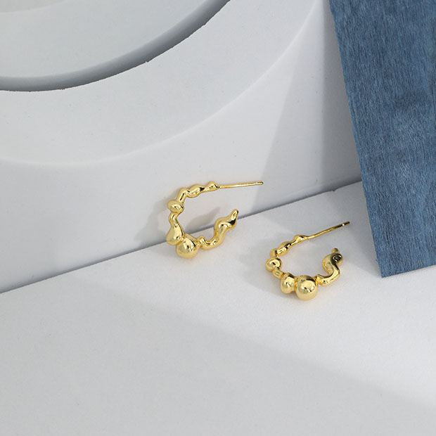 Geometry Irregular C Shape 925 Sterling Silver Hoop Earrings