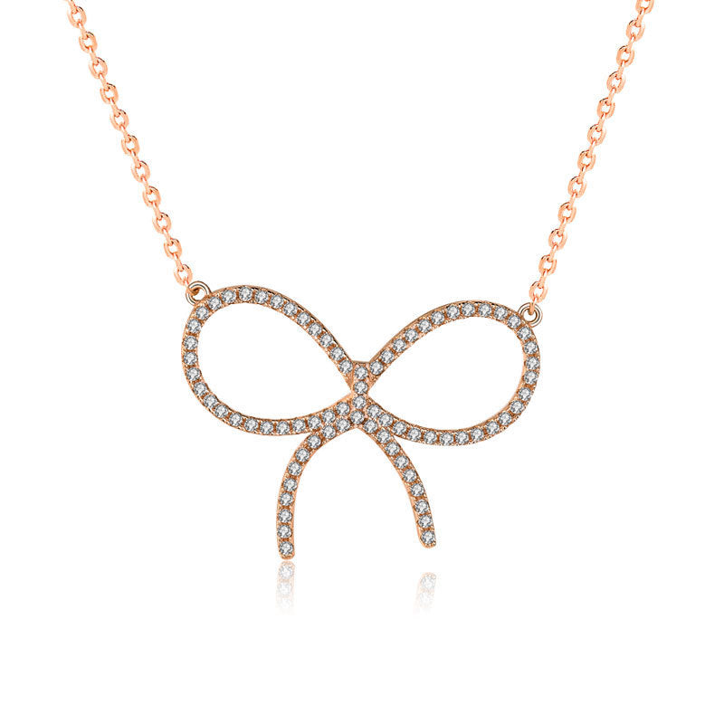 Girl CZ Hollow Bowknot 925 Sterling Silver Necklace
